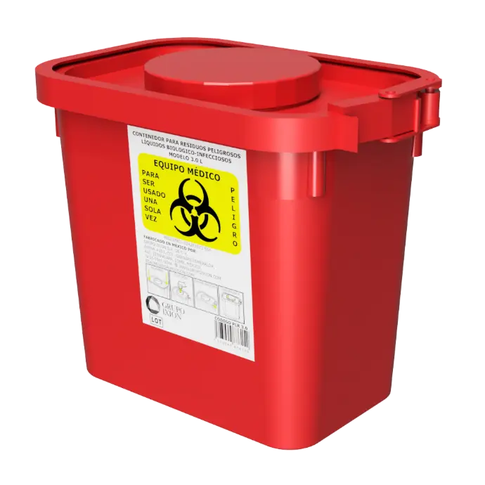 Para el desecho de líquidos sangre y residuos no anatómicos. Con taparrosca para un llenado mas sencillo.